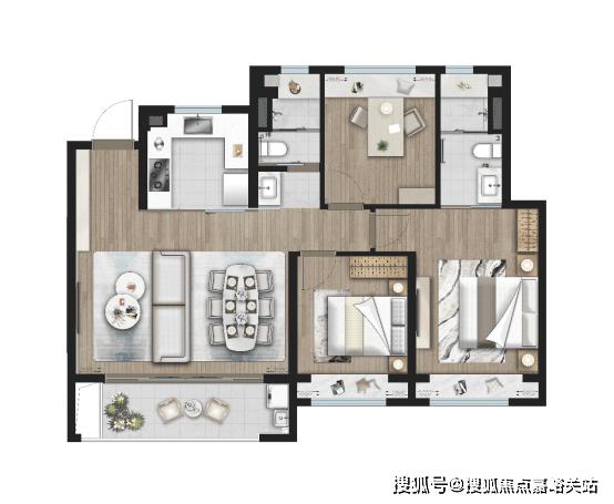 而且,项目这个3房虽然建面只有约89㎡,但尺度感和空间感足以媲美市面上建面约100㎡左右的3房户型。这归功于户型